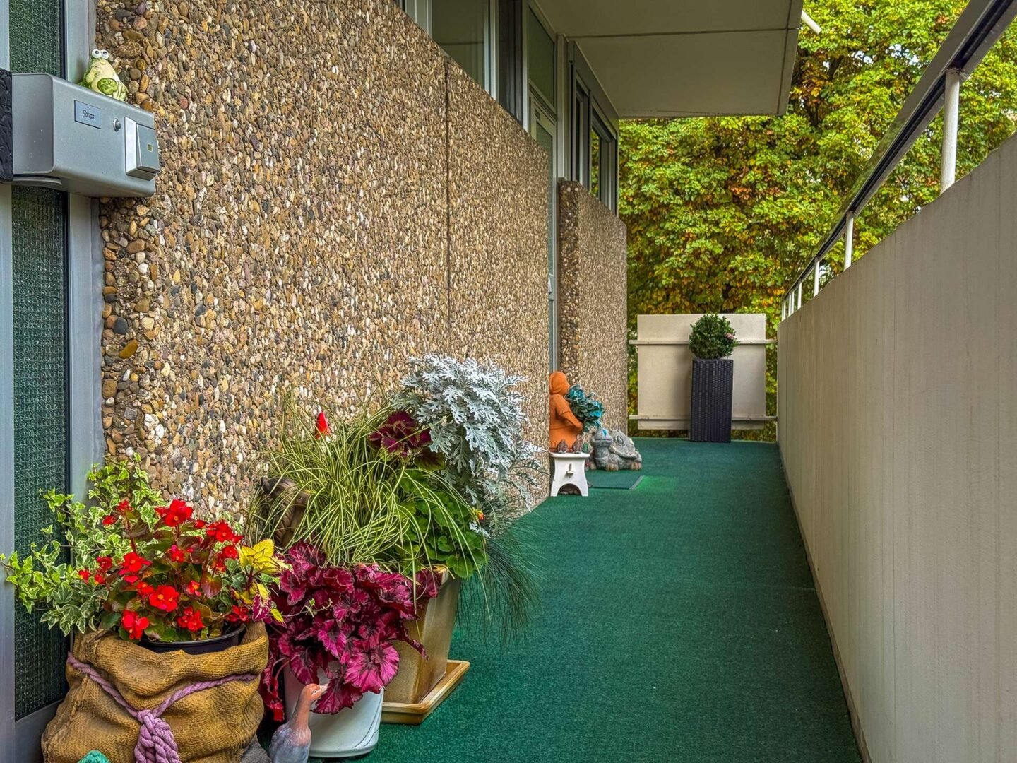 Über den Laubengang gelangt man zur Wohnung, die am Ende des Gangs liegt und dadurch einen ruhigen Zugang bietet.